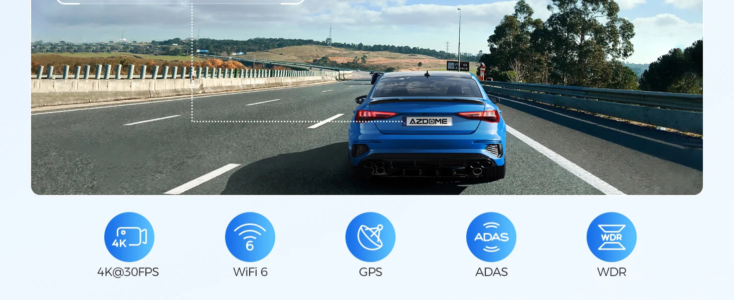 Never lose track of your journeys with built-in GPS that accurately records your routes, speed, and location data. Review your trips using the AZDOME GPS player software on your computer. The 24-hour parking monitoring feature protects your vehicle even when you're away, using time-lapse recording to save storage space while capturing important events. Connect via WiFi 6 for lightning-fast file transfers—twice as fast as standard WiFi. The G-sensor and motion detection automatically save footage when impact or movement is detected, ensuring critical moments are never overwritten.