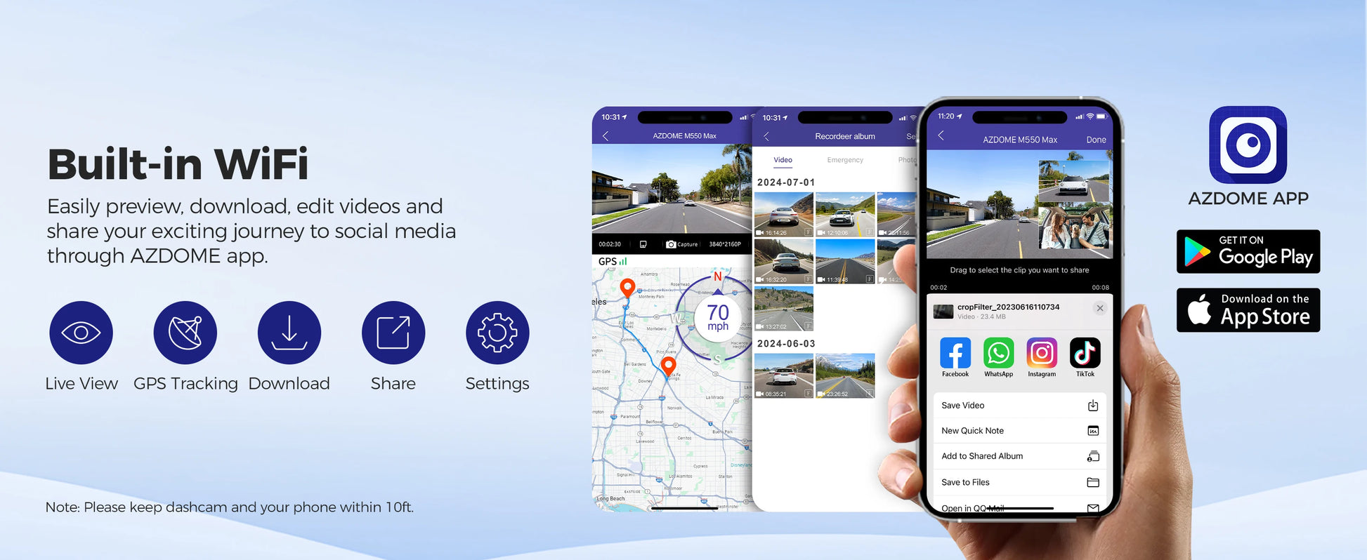 | Built-in WiFi | Yes (APP Control via AZDOME App) |